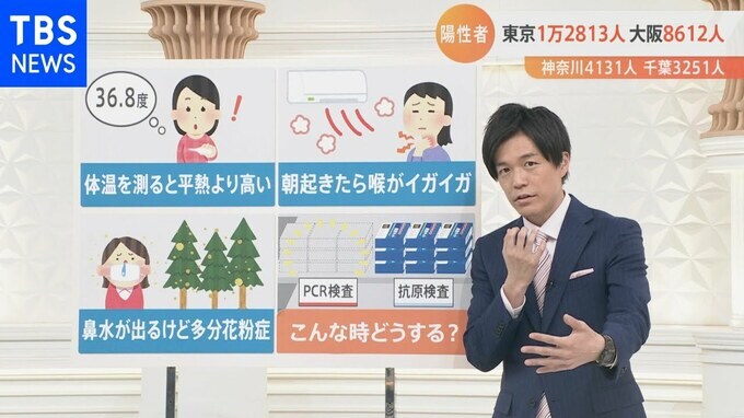 朝起きて、喉がイガイガだったらどうしよう?多くの感染者を診てきた医師によると「喉の痛みはオミクロン株の特徴のひとつ」「喉の痛みを訴える人が多い」そうです。その他、鼻水が出て、花粉症が疑われるケースは…