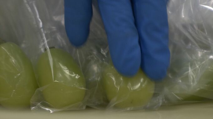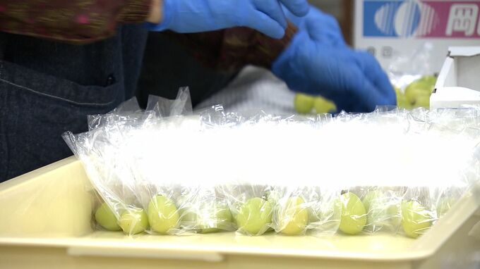一方、おもてなし給食の一つ、マスカットの準備も行われました。今回は感染対策として、1粒1粒袋に入れてランナーに提供されます。