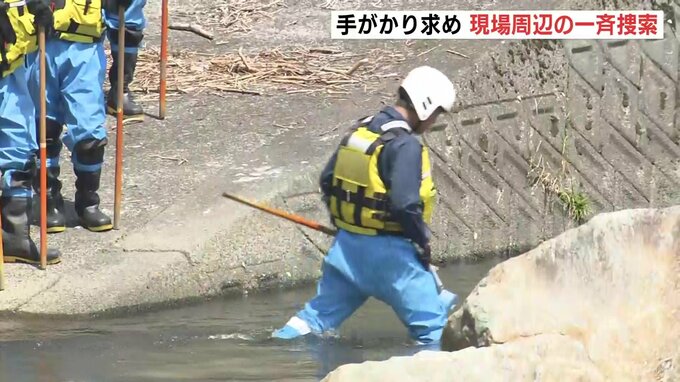 「今、川の捜索が始まりました。捜査員たちが現場近くを流れる粟田川へと入っていきます」
