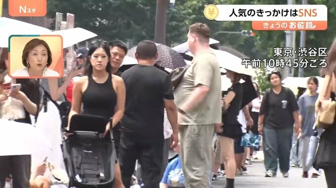 原宿にある店舗には、外国人のお客さんが殺到していました。あまりの人気に売り切れてしまうことも多いようです。