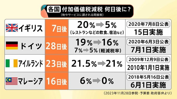 【各国 付加価値税減税 何日後に?】(物やサービスに化される間接税)