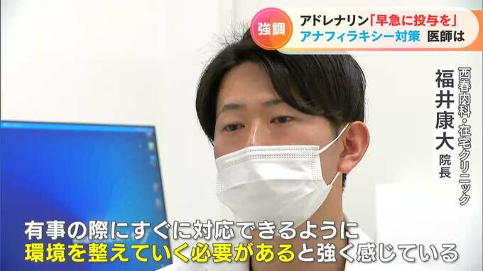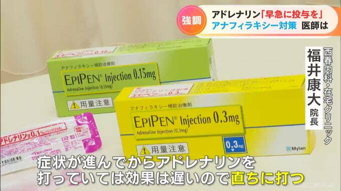 「アナフィラキシーの疑いと診断したタイミングですぐに打つ。症状が進んでからアドレナリンを打っていては効果は遅いので直ちに打つ」