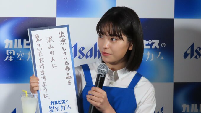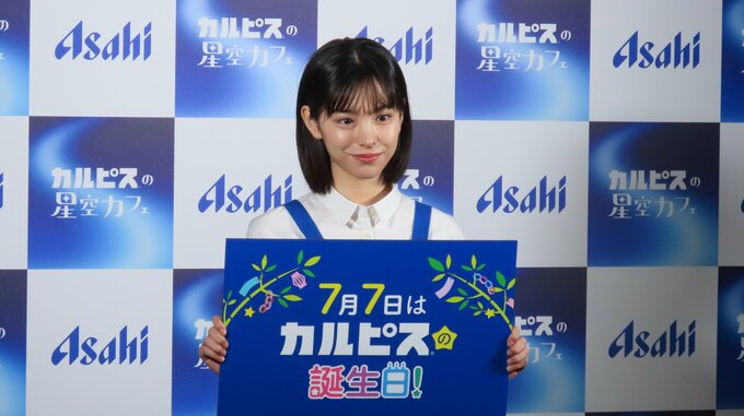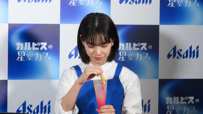 俳優の當真あみさんが、「『カルピス』の星空カフェ」PRイベントに登場。東京・下北沢にオープンする期間限定のカフェ「『カルピス』の星空カフェ」の1日店長として奮闘しました。