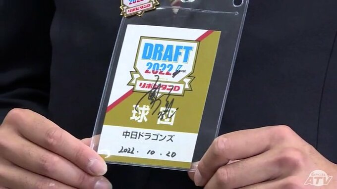 松山投手は緊張した表情で立浪和義監督のサインが書かれたドラフト会議のIDパスを受け取っていました。