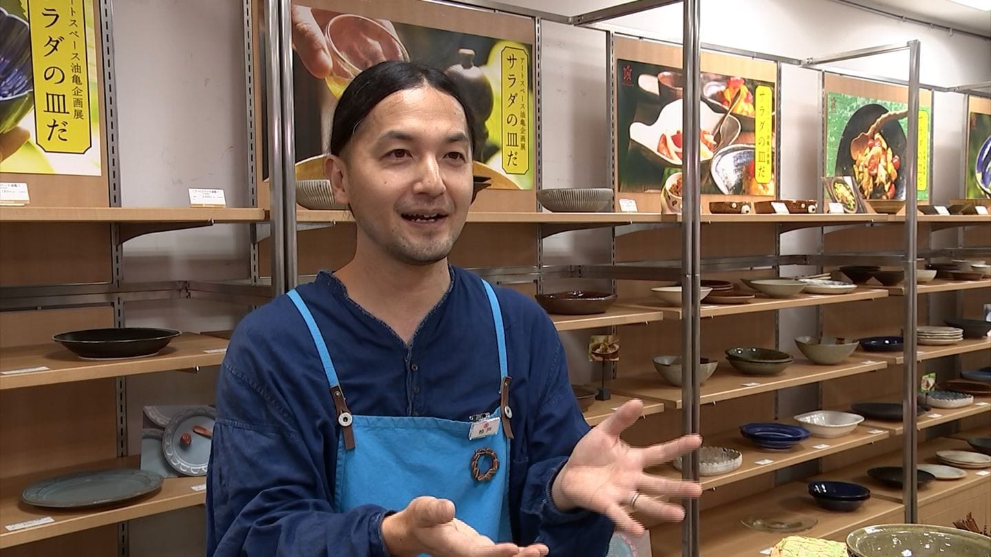 国内各地の作家約50人による作品です。その名も「サラダの皿だ」。野菜を食べて暑い夏を涼しく、また、より楽しく日常を過ごしてもらおうと、岡山市北区出石町のギャラリー「アートスペース油亀」が企画しました。単なる「取り皿」ではなく野菜をもっとおいしく楽しむための器の数々です。