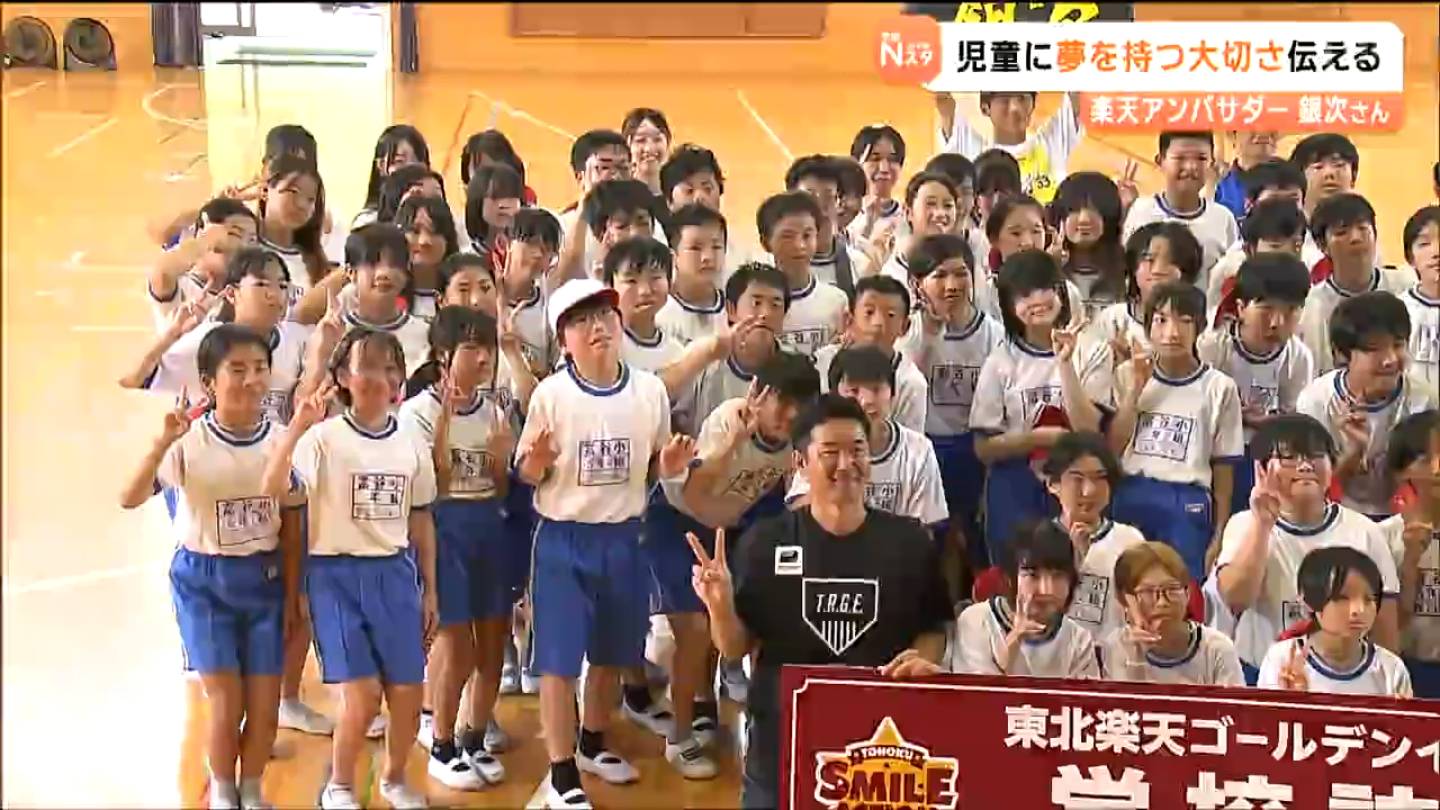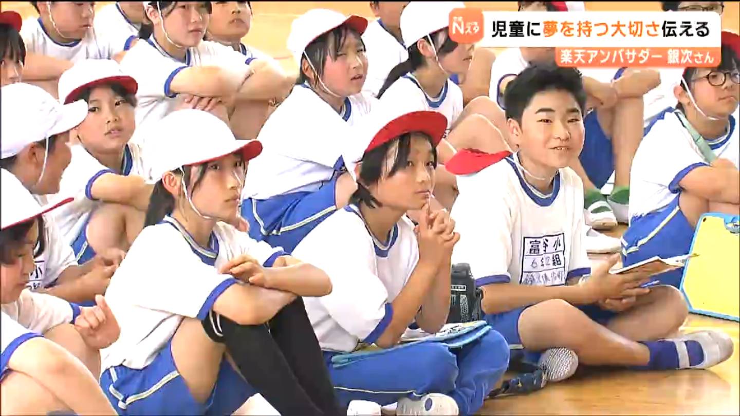 プロ野球、楽天イーグルスのアンバサダーを務める銀次さんらが3日、宮城県富谷市内の小学校を訪問し、夢を持つことの大切さを伝えました。