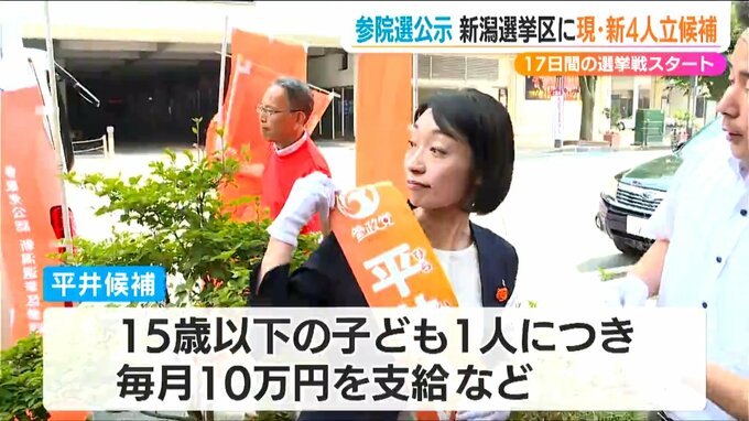 参政党の平井さんは少子化対策や経済対策として子ども1人につき毎月10万円を支給することなどを訴えます。