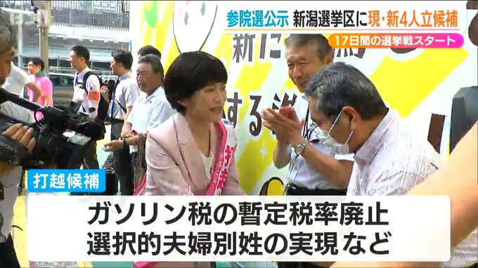 立憲民主党の打越さんは、ガソリン税の暫定税率廃止や選択的夫婦別姓の実現などを訴えます。
