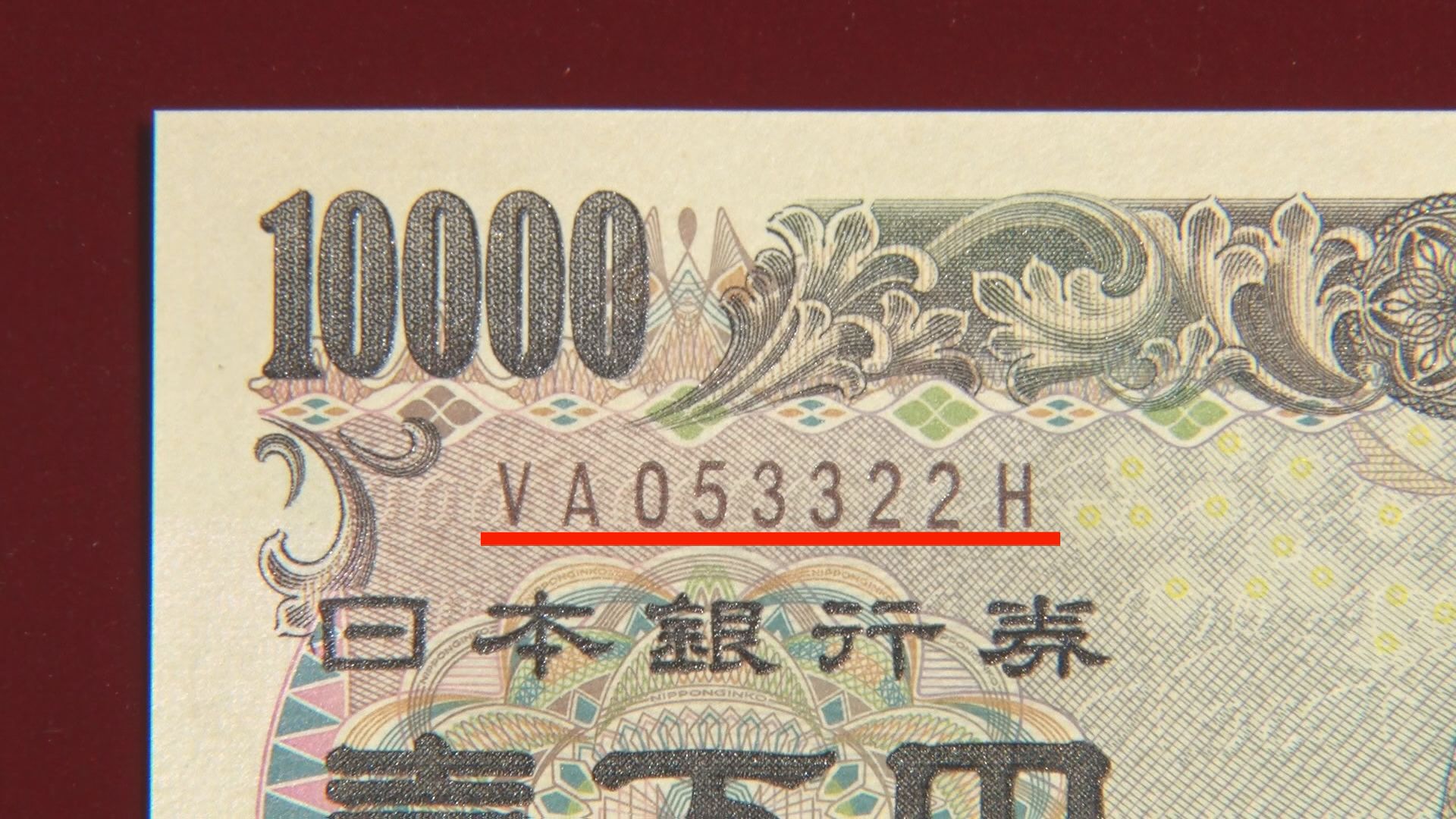 「一般的に皆様が使われているお札になりますので、流通量がすごく多い分、価値は上がりにくくなっています。ものによってはプレミアがついて高値になる可能性があります。ポイントはお札の右下にある数字『記番号』ですね」