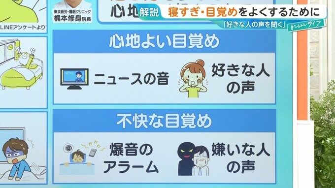 興味のあるニュースの音声や好きな人の声などで起きることが「心地よい目覚め」につながります。