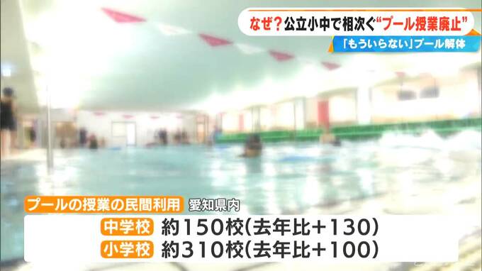 愛知県と名古屋市によりますと、ことしプールの授業に民間を利用する公立中学校は、去年より130校増えて約150校に。公立小学校では100校増えて約310校になる見込みです。学校から水しぶきの音が完全に消える日が近いのかもしれません。