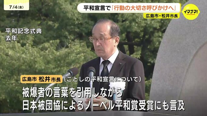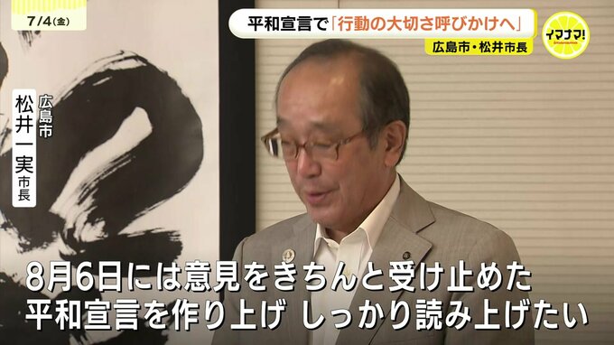 来月6日の平和記念式典で読み上げる「平和宣言」について広島市の松井市長は、厳しい国際情勢の中でも行動することの大切さを呼びかけていく考えを示しました。