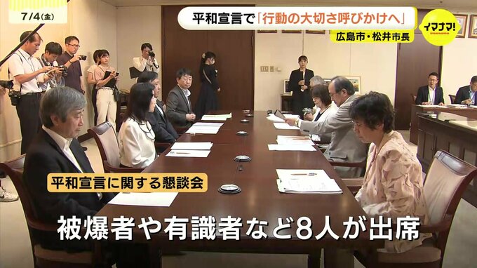 3回目の懇談会には、被爆者や有識者など8人が出席。最終会合となる今回は松井市長が文案を示し、非公開で議論しました。