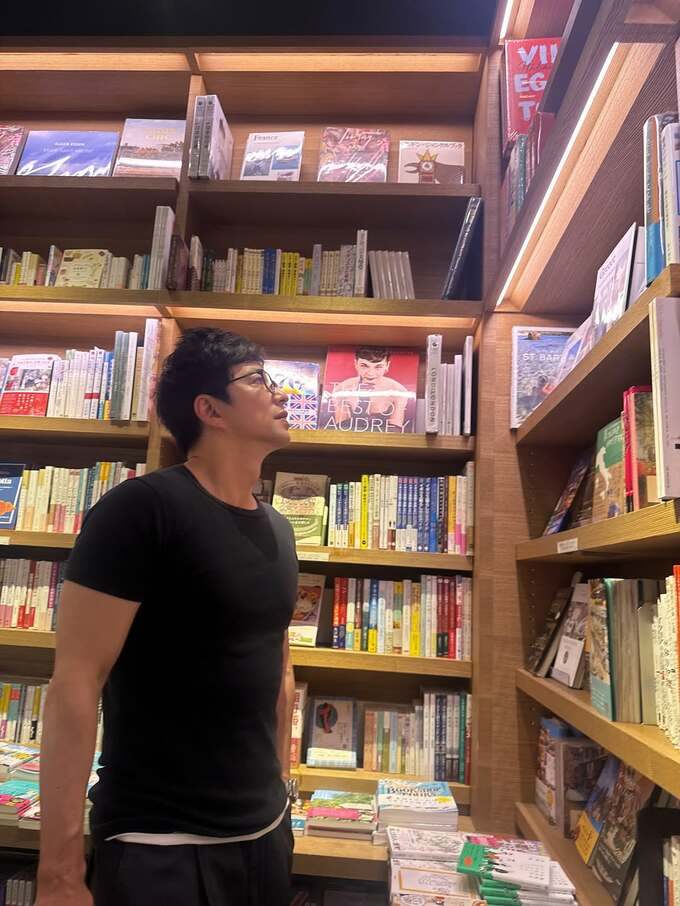 3枚目の写真でも真剣に書棚を眺めていて、感性を刺激する一冊を探している模様。その眼差しやたたずまいに、フォロワーからは「本と胸板に挟まれる世界線連れてって」「見つめられてる本が羨ましい」「選んだ本を教えてください」「『すみません 上にあるその本を取っていただけますか』って言ってみたい妄想」など、憧れのリプライが集まっています。