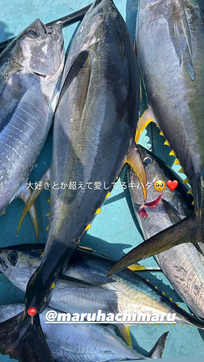その前に片原さんは、釣り船の甲板と思われる場所にぎっしりと横たえられた6尾の魚の写真を投稿。真ん中の大きな魚に合わせ「大好きとか超えて愛してるキハダ」と文字を乗せていて、釣りで勝負できるうえに美味しく食べられるキハダマグロを心から愛している様子が伝わってきます。
