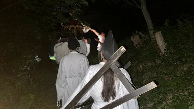 毘沙門天をのせた神輿は、東山の周辺を2キロほど回り、奥宮へ向かいます。