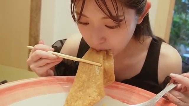松村さんは「大きすぎるおうどん」の大きなエビ天やきつね油揚げ、そして一枚ものの牛しゃぶ肉を堪能しつつ、ちょっとお疲れの様子。マネージャーさんとスタッフさんとの3人で分け合って、「3人で力を合わせて」3人前4玉の “おうどん” を完食しました。松村さんは「青春の味です!」と笑顔を弾けさせていました。
