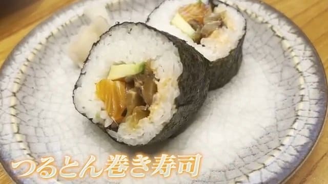 迷いに迷ったあげく、松村さんは「明太子クリームのおうどん」「クラムチャウダーのおうどん」そして「つるとんたんの大きすぎるおうどん」の3種類を注文。それに加えて、穴子の一本寿司や巻き寿司の「つるとん巻き寿司」などサイドメニューも注文します。