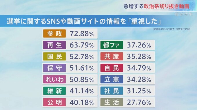 JNNが行った都議選の出口調査によると、投票にあたりSNSや動画サイトの情報を