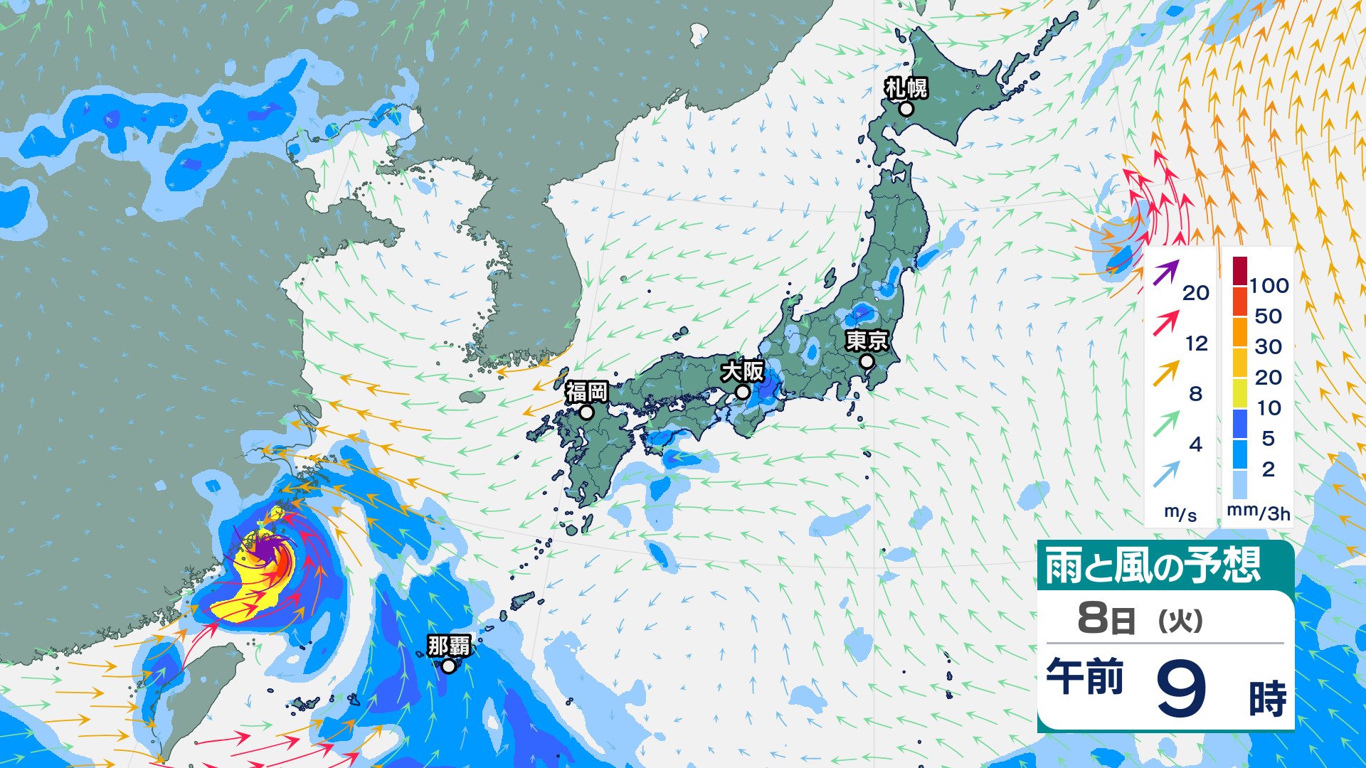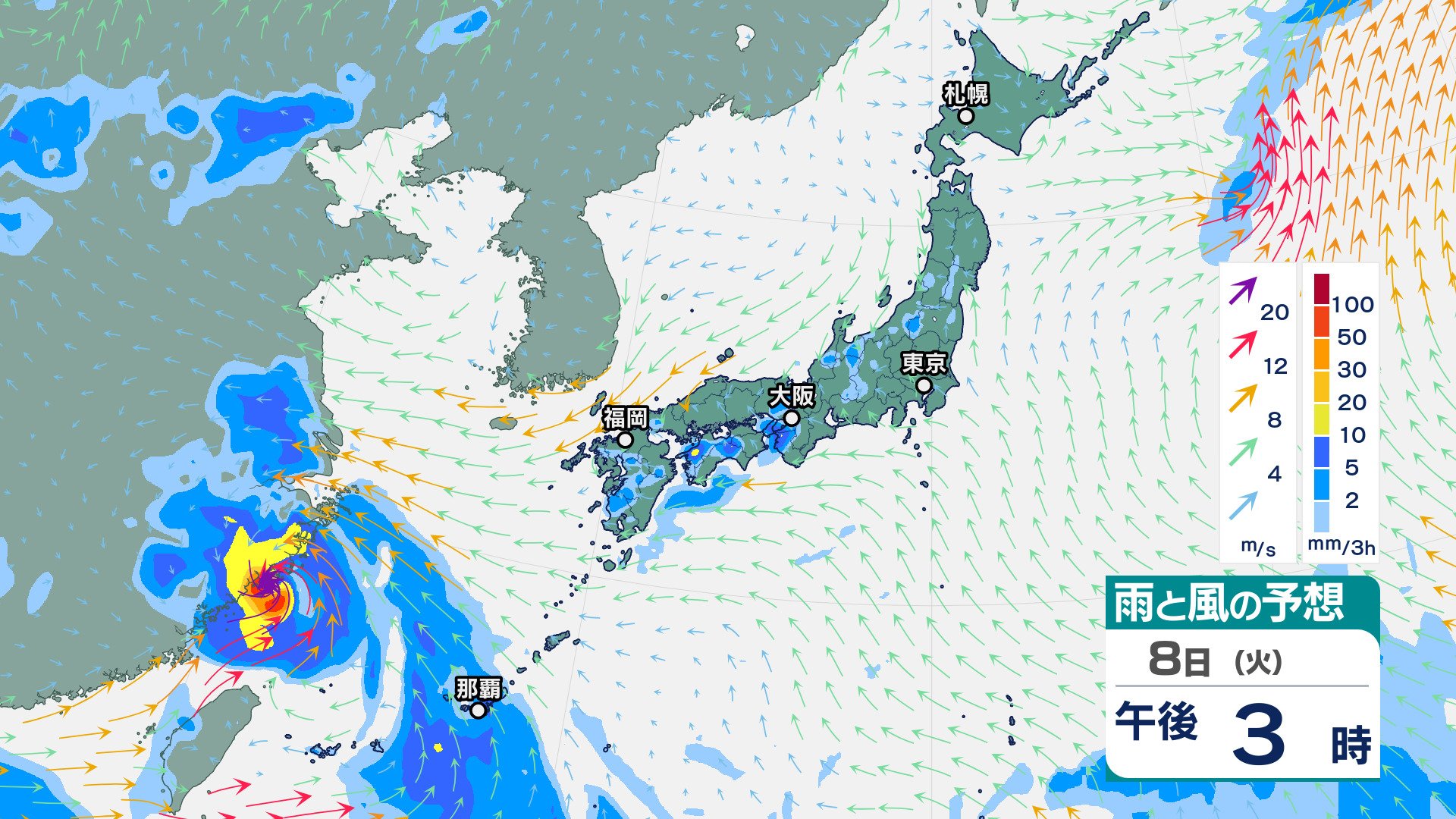【ダブル台風情報】台風4号の進路は台湾海峡へ 日本への影響は… 7日にかけ勢力拡大の見込み 【雨と風 シミュレーション】台風3号は本州の東を北上 チューリップテレビ 2025年7月6日(日) 07:29 国内 天気 8日(火)雨と風のシミュレーション