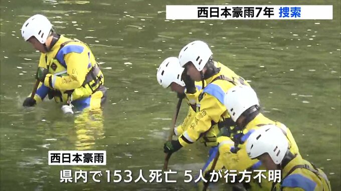 2018年7月の西日本豪雨では、関連死を含めて153人が亡くなり5人の行方が分かっていません。県警によりますと、目撃情報や手がかりも寄せられていないということです。