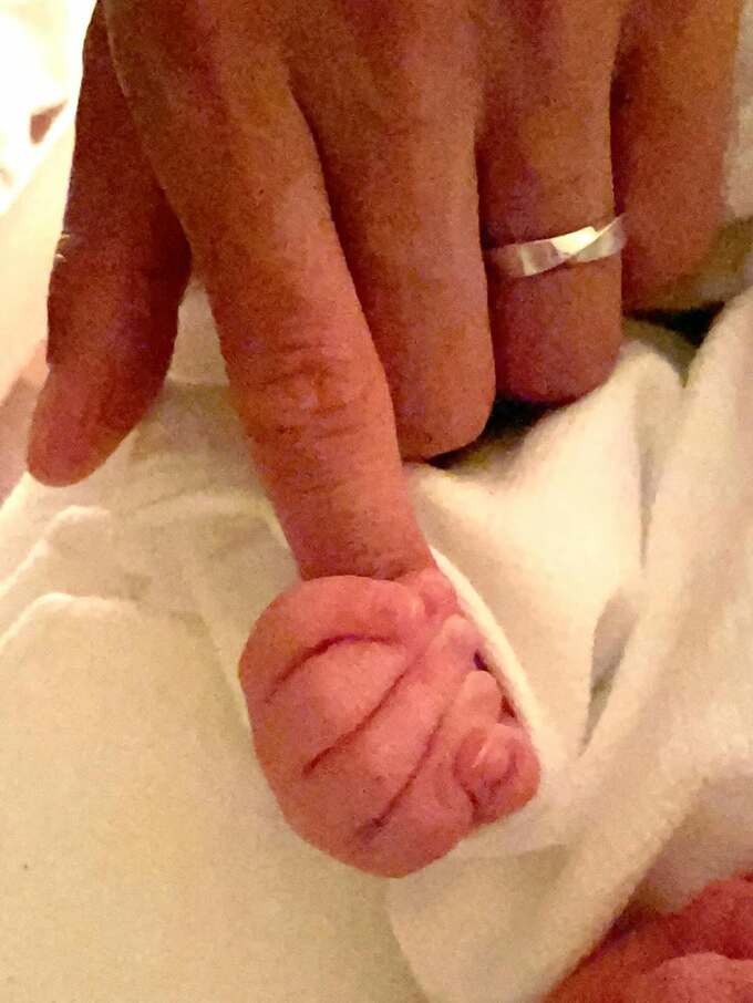 田中道子さんは「この度、第一子となる長男が誕生しました。」と綴ると、小さな赤ちゃんの手の写真をアップ。