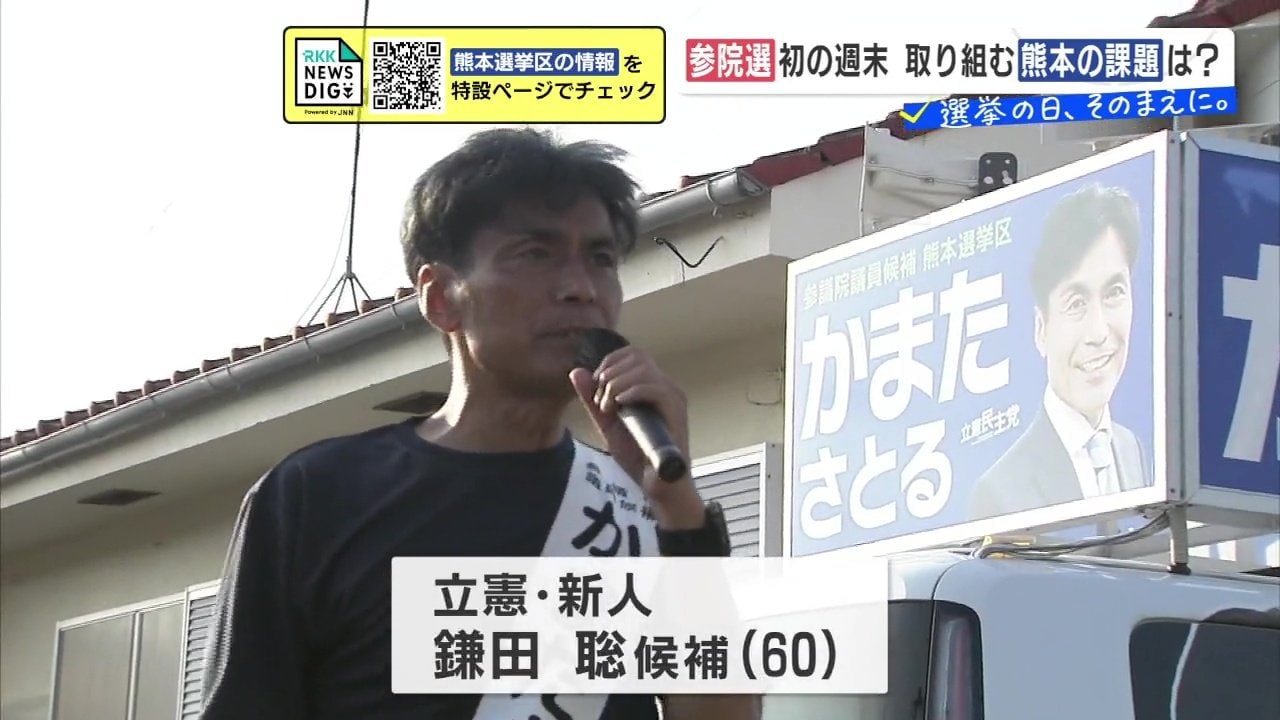 立憲民主党の新人、鎌田聡(かまた・さとる)氏(60)は、おととい八代市で遊説しました。立憲民主党は今回の参院選で熊本を「重点選挙区」と位置づけ、公示前から野田代表をはじめ、幹部を次々と送り込んでいます。