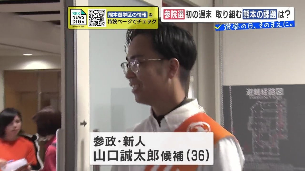 参政党・新人の山口誠太郎(やまぐち・せいたろう)氏(36)は、知名度を上げるため大票田の熊本市を中心に活動しています。きのう開いた個人演説会には、約140人が集まりました。会場には家族連れの姿もあり、山口氏は「自らも子育て世代であることが一番の強み」だとして、県民目線の政治活動を目指す考えです。