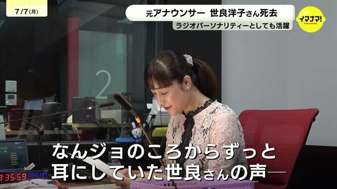 7日のラジオ番組では、世良さんの過去の音声を使い、世良さんを偲ぶリスナーからのメールも紹介されました。