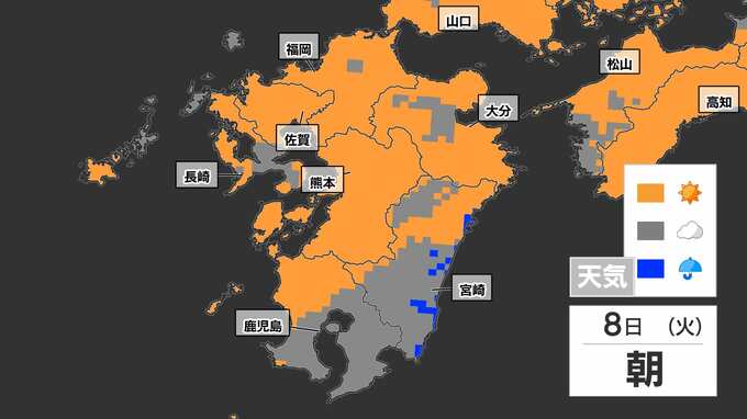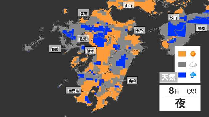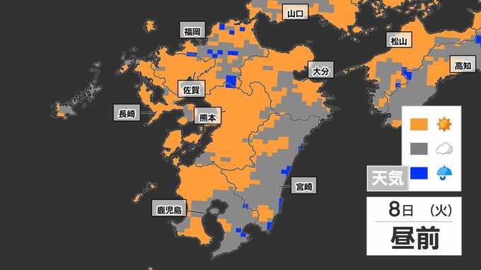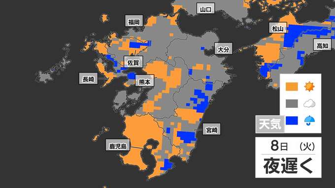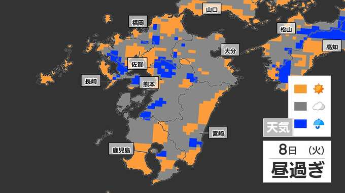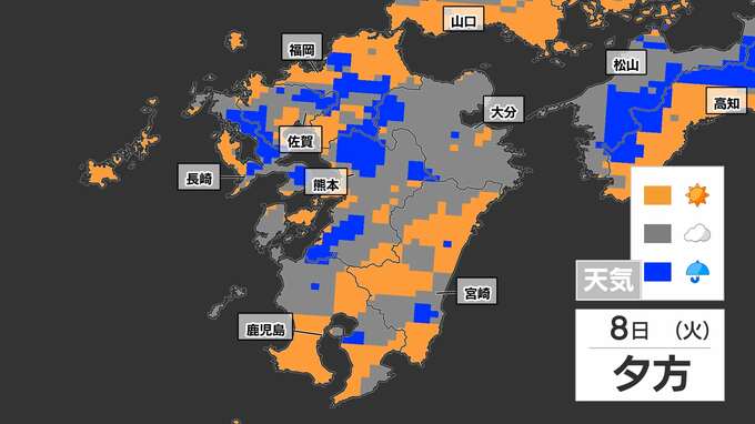 【8日(火)突然の雨に注意】「落雷と突風に関する気象情報」福岡管区気象台発表【雨と発雷確率のシミュレーション】福岡・佐賀・長崎・大分・熊本・宮崎・鹿児島 南日本放送 2025年7月7日(月) 19:30 国内 天気 雨のシミュレーション 突然の雨、特に雷雨に注意してください。雨と晴れが近くで予想されていて、非常に予報が難しいケースです。雨のシミュレーションは、画像で確認できます。