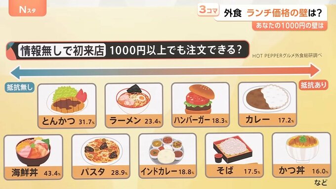 物価高が続く中、3人に1人が「夜の外食が減った」と回答していることがわかりました。みなさん、夜の外食でいくら使うのか?心理的な「値段の壁」がありました。