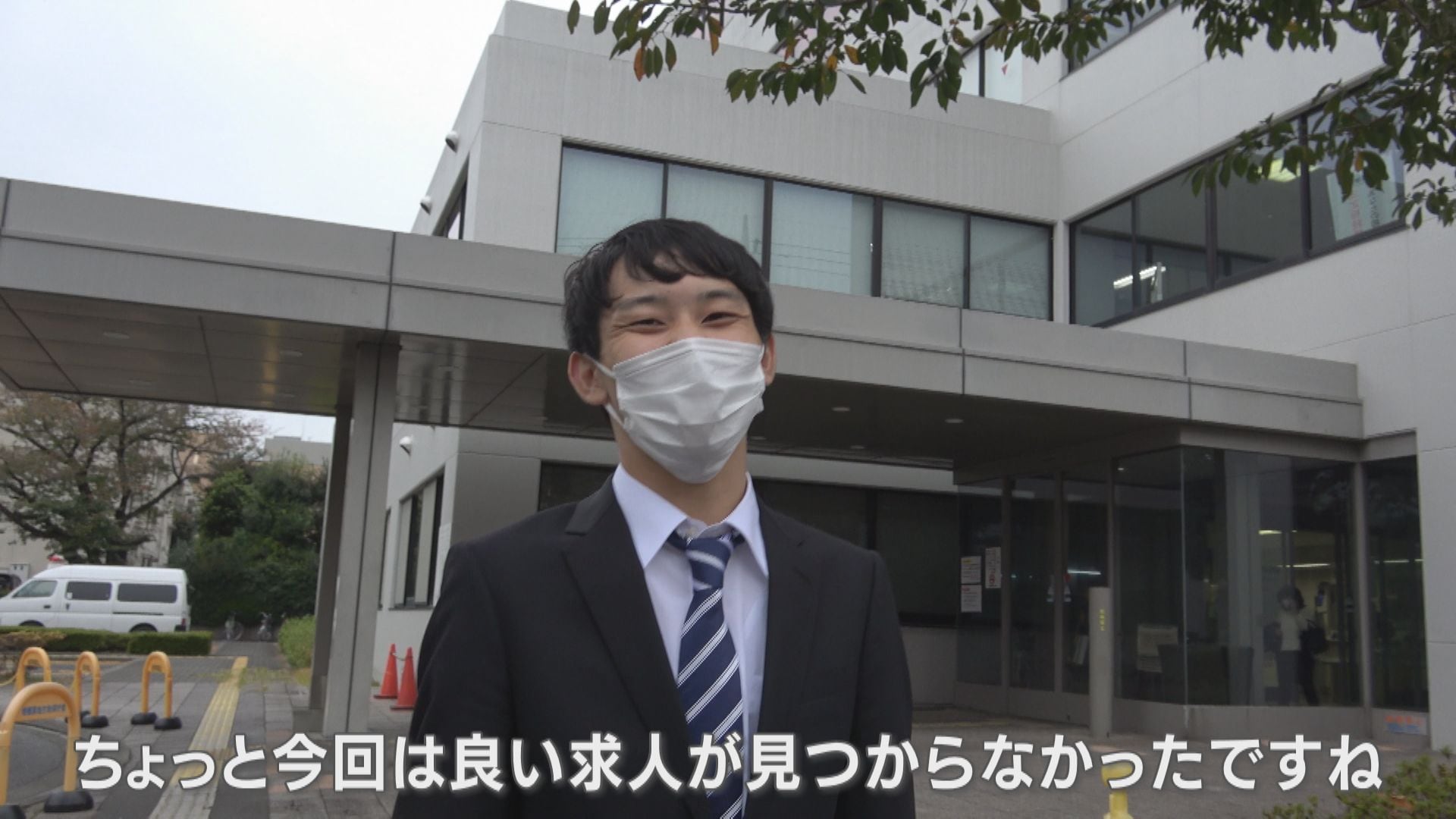 リクルートスーツに身を固めた酒井さん。11月上旬、ハローワークに向かった。