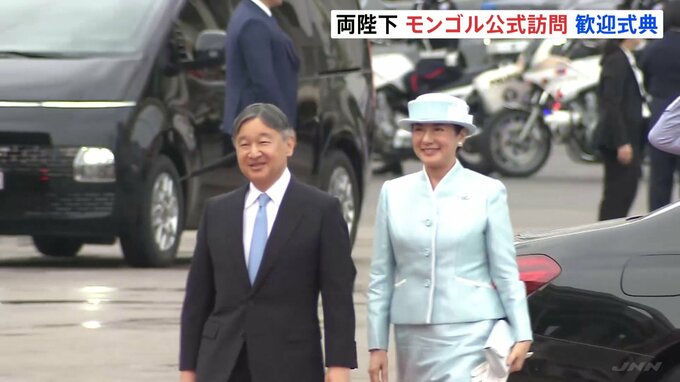 モンゴルを公式訪問中の天皇皇后両陛下は、国賓として最初の公式行事である「歓迎式典」に出席されました。日本時間午前11時ごろ、両陛下は式典会場の「スフバートル広場」に到着し、出迎えたモンゴルのフレルスフ…
