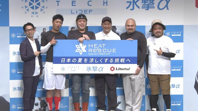 野生爆弾のくっきー!さん、とにかく明るい安村さん、パンサーの尾形貴弘さん、鬼越トマホークの金ちゃん、良ちゃんら吉本芸人が、暑さ対策の必要性を訴える「HEAT RESCUE PROJECT」記者発表会に参加しました。