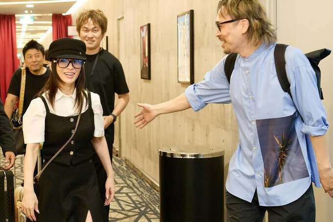 投稿された画像では、メガネ姿の浜崎あゆみさんが、リラックスした表情でドリンクを掲げる姿や、スタッフと談笑する様子、集まった大勢のファンの声援にこたえるショットなどが見て取れます。