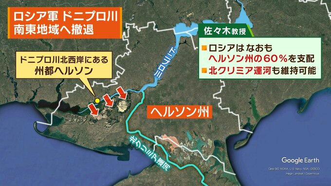 ーーロシア軍が侵攻後、唯一掌握した州都ヘルソンから撤退を開始という情報があります。ロシア派はなおヘルソン州の60%を支配しているという情報もありますが、クリミア運河も維持しているというのがポイントでしょうか?
