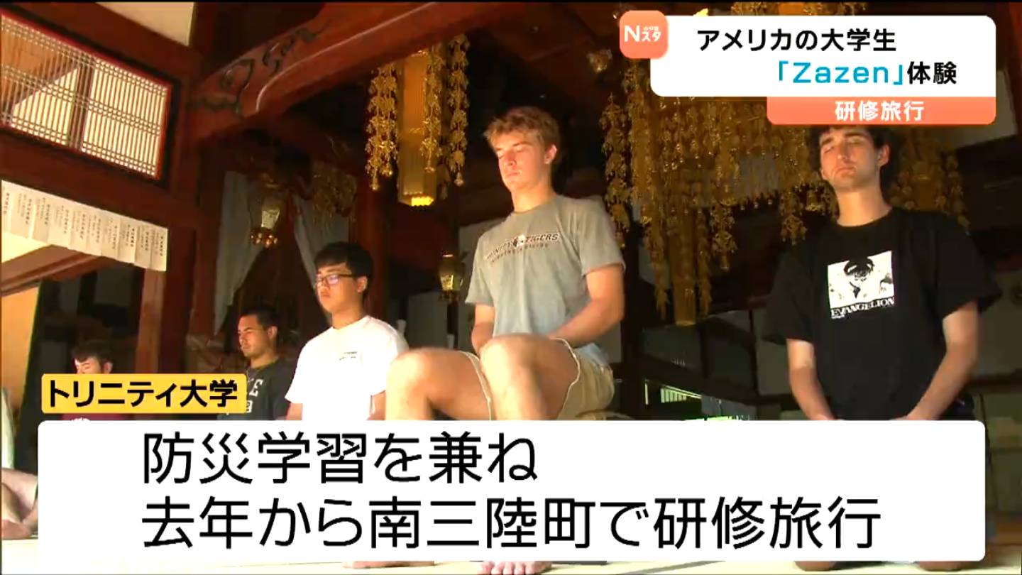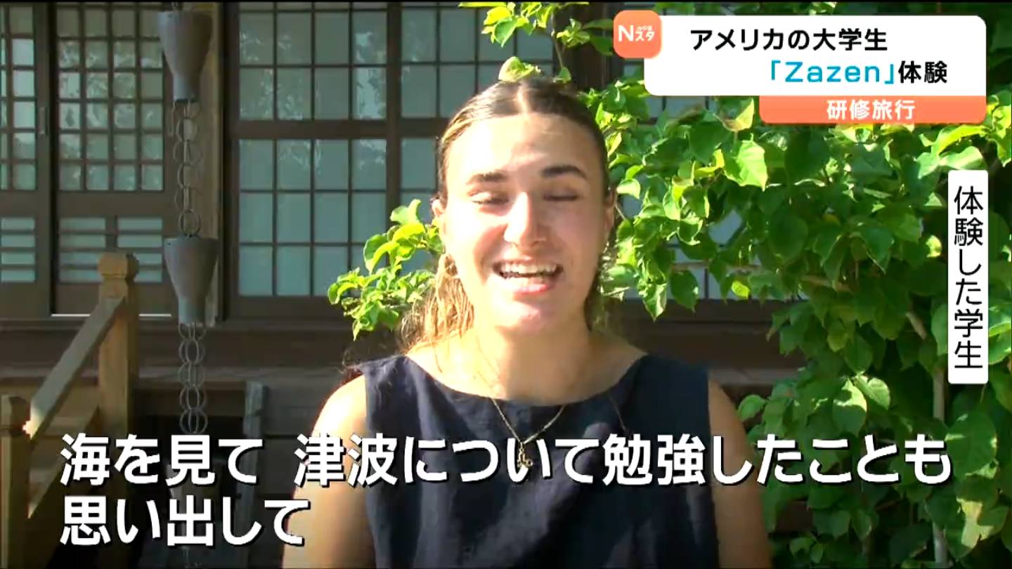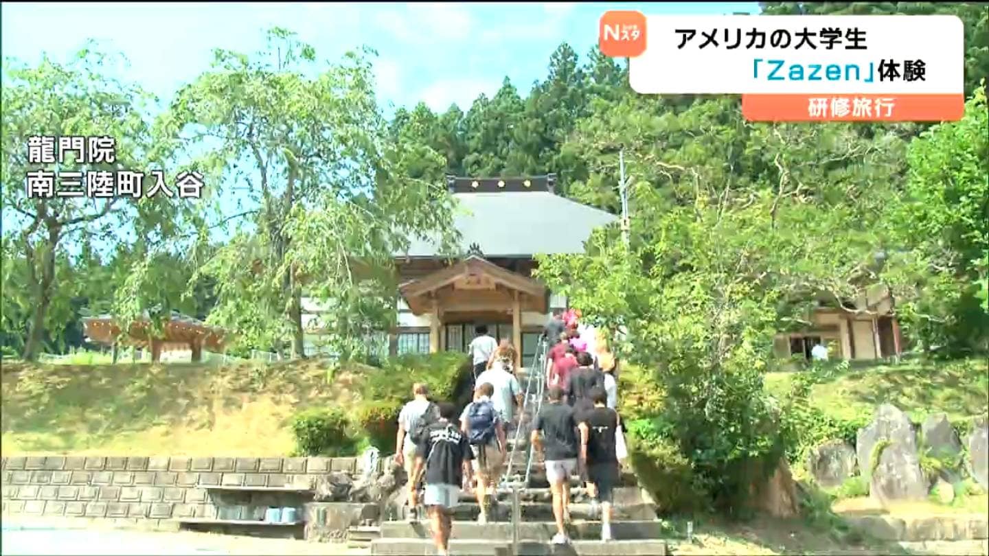 アメリカ・テキサス州の大学生たちが、研修旅行のため、7日から宮城県南三陸町を訪れています。8日に体験したのは、キャンプ場でのバーベキューと日本の「座禅」です。