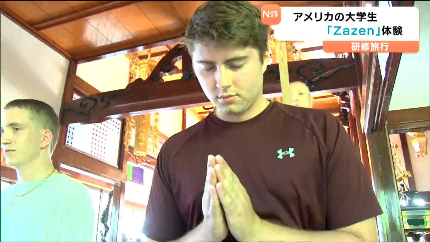 心を落ち着かせ集中力を高める座禅は、ここ最近、世界的にも注目されているといいます。学生たちは、静寂に包まれた本堂でおよそ20分間、瞑想しました。