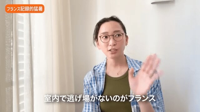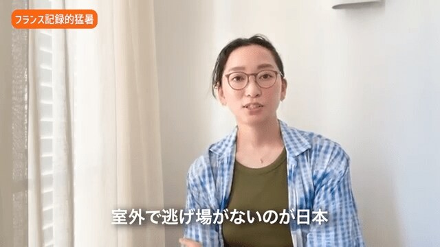 日本とフランスの暑さの違いについて、「室内で逃げ場がないのがフランス。室外、外で逃げ場がないのが東京とか日本なのかな」と比較します。フランスでは朝早くや夜は比較的涼しくなるものの、クーラーがないため室内は厳しい環境。一方の日本は「朝から25℃以上で、25℃を下回るタイミングがない」と述べ、「犬とか子どもとか、外に出してあげたいと思っていても」過酷で外出が難しいと伝えています。