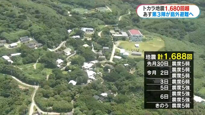 地震が相次ぐトカラ列島近海では、これまでの地震回数が1688回にのぼっています。十島村はあす9日、第3陣となる住民の島外避難を行います。