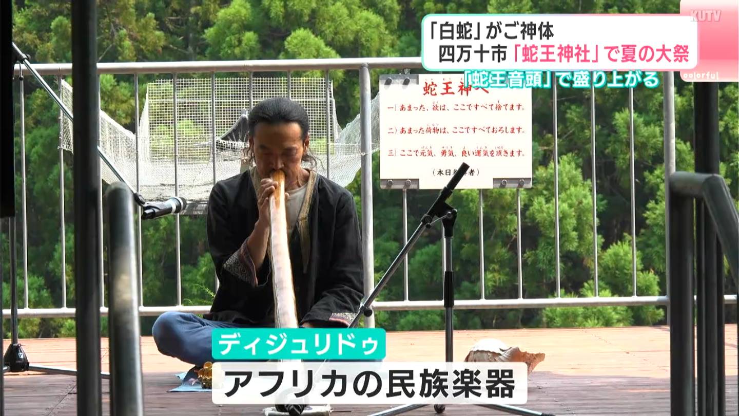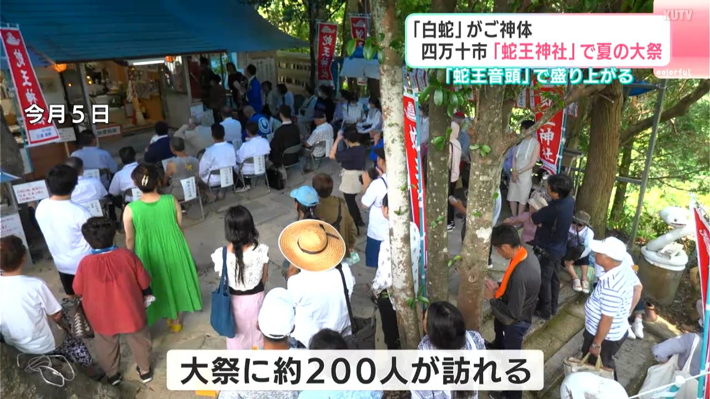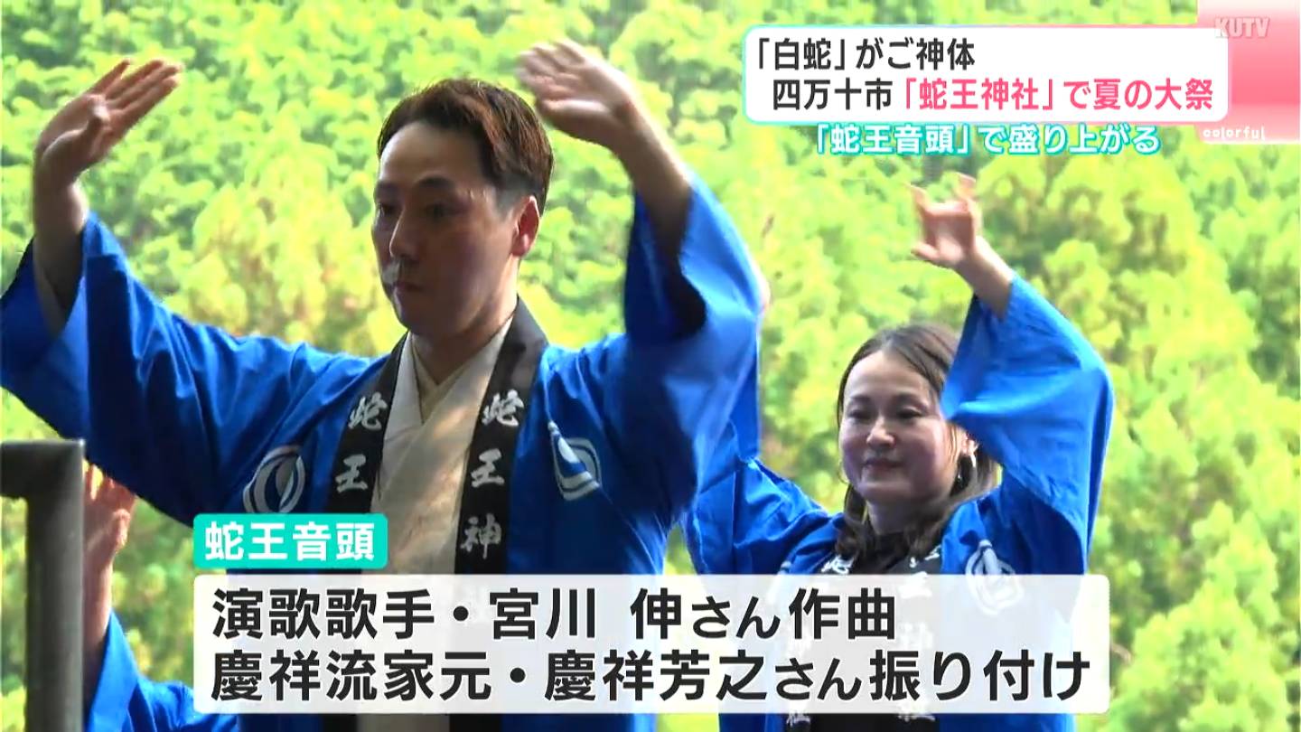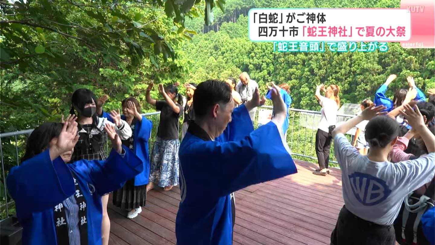 白蛇をご神体として祀る高知県四万十市の「蛇王神社」で夏の大祭が開かれました。境内では地域を盛り上げようと作られた「土佐・蛇王音頭」も披露され、大勢の人たちが一体となって盛り上がりました。