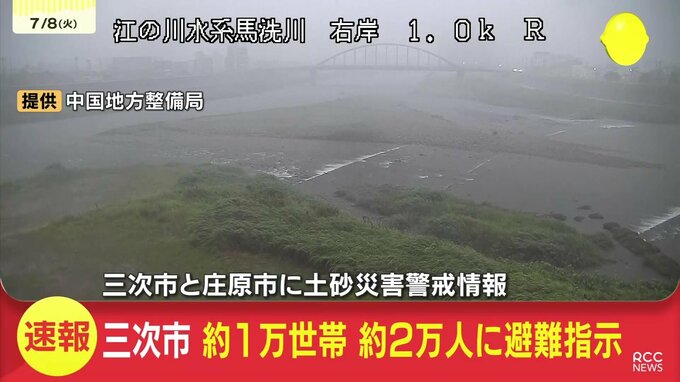 また、三次市と庄原市に警戒レベル4の土砂災害警戒情報が発表されました。三次市は十日市地区など合わせて1万466世帯の2万1763人に避難指示を出しています。