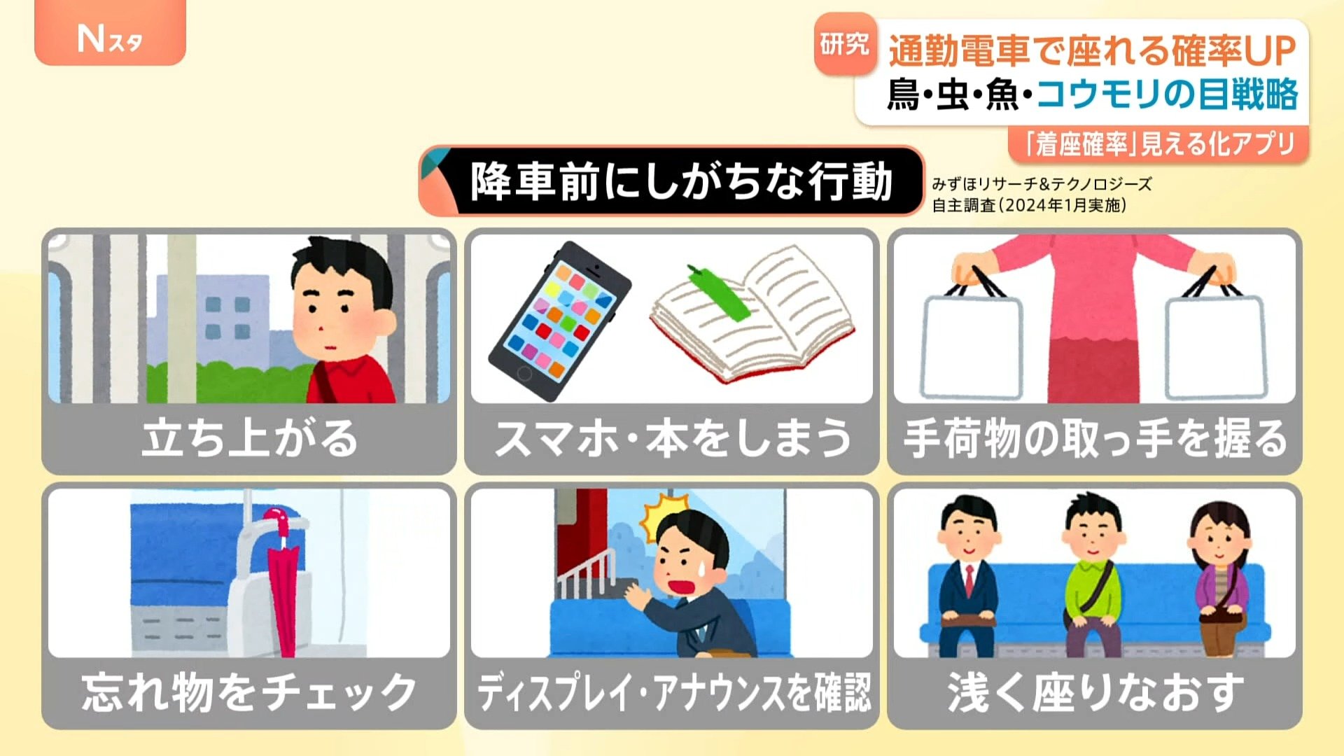 なぜなら、降りる人は直前にスマートフォンや本をしまったり、アナウンスを確認するなど、“しがちな行動” があるということです。これを察知することで、“座れるチャンス”が拡大するというのです。