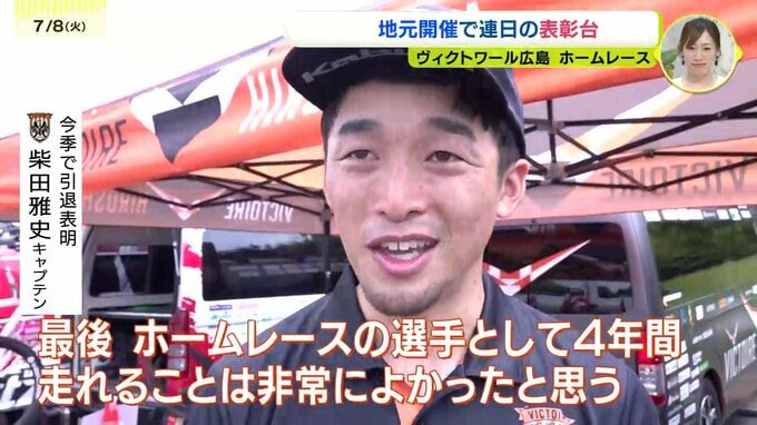 「今日こそは勝利をと思ったんですけど、その中でもなんとか表彰台は取れたんで最低限は皆さんに見せる走りはできたんかなと.前半から他のチームメンバーが動いてくれたので盛り上げることはできたのかなと思います」
