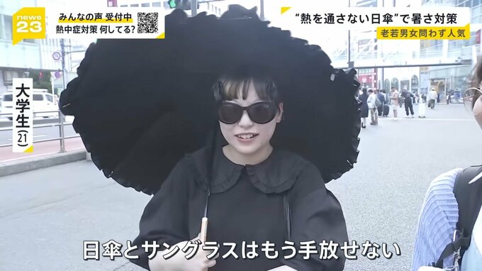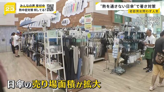 「日を避けるよりは“暑さを遮る”目的で購入される方が多い。年齢層は幅広く日傘は売れている」