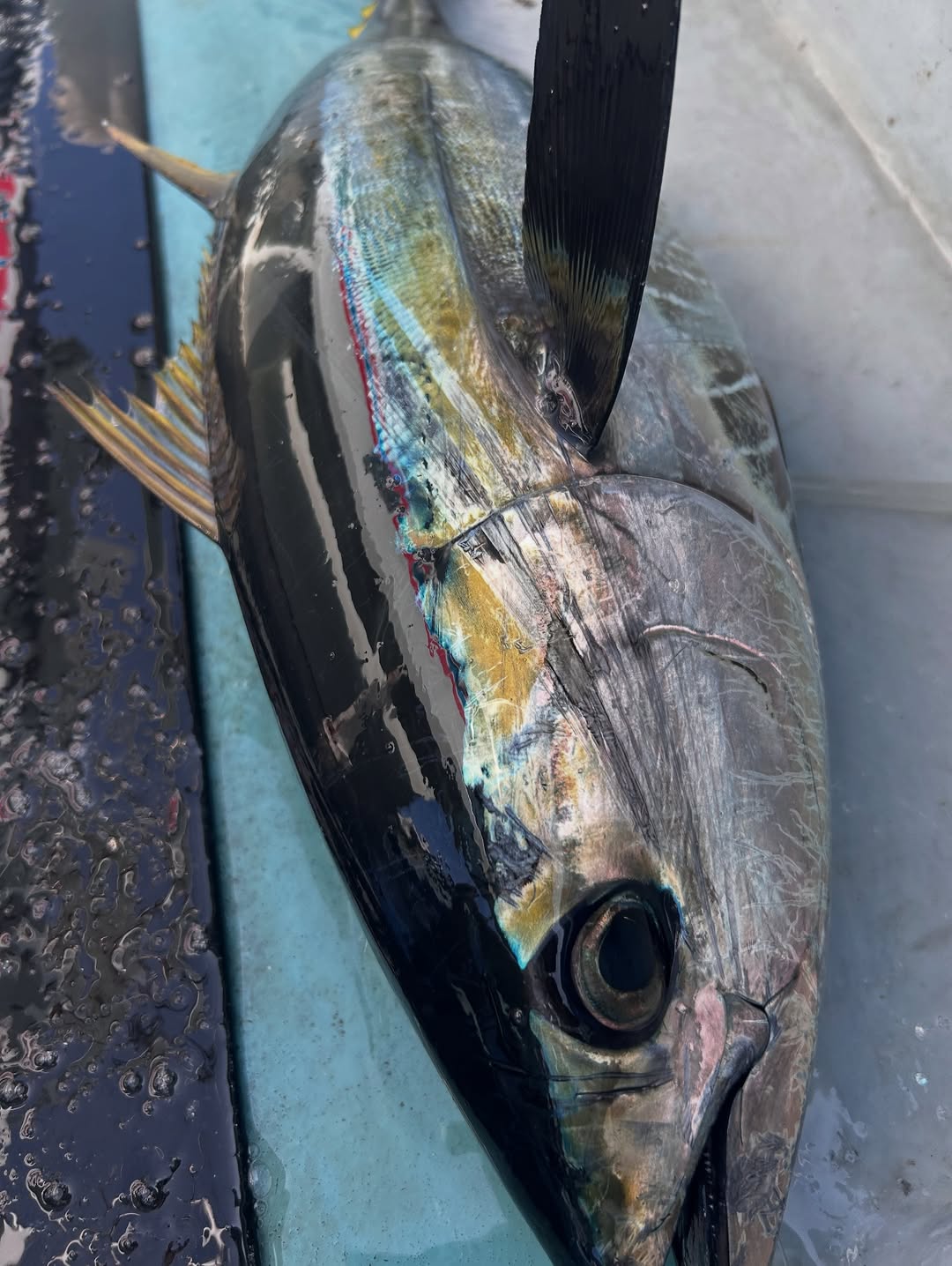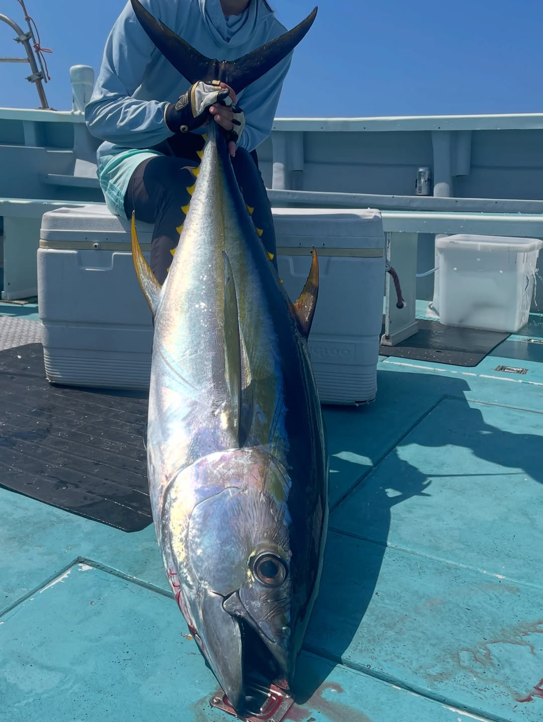 キハダマグロ釣りには「泳がせ」や「フカセ」といった特殊な釣り方を用いることがあります。片原さんもハッシュタグで「#泳がせ #キハダフカセ」と記載しており、専門的な釣り技術に挑戦した様子がうかがえます。