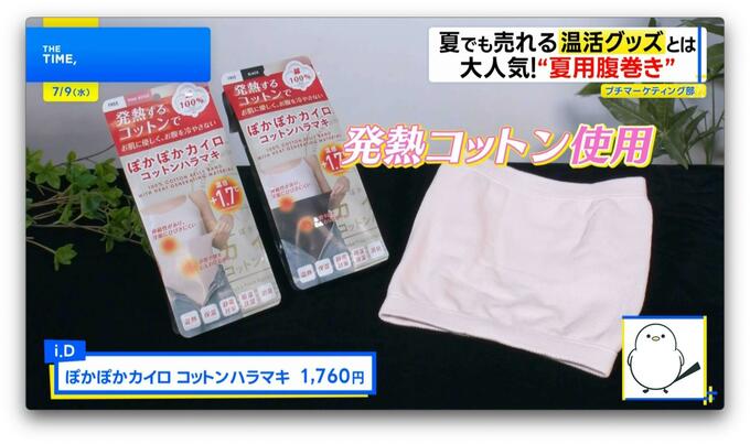 そんな夏用腹巻として、“熱くなり過ぎない”のが特徴の「ぽかぽかカイロ コットンハラマキ」( i.D/1760円)。