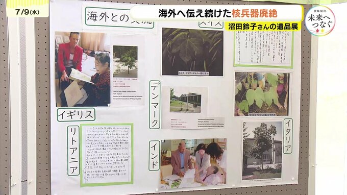 今回のテーマは「海外の人とのつながり」です。およそ20の国と地域で被爆証言したことなどを直筆の原稿用紙に写真、年表も交えて、伝えています。
