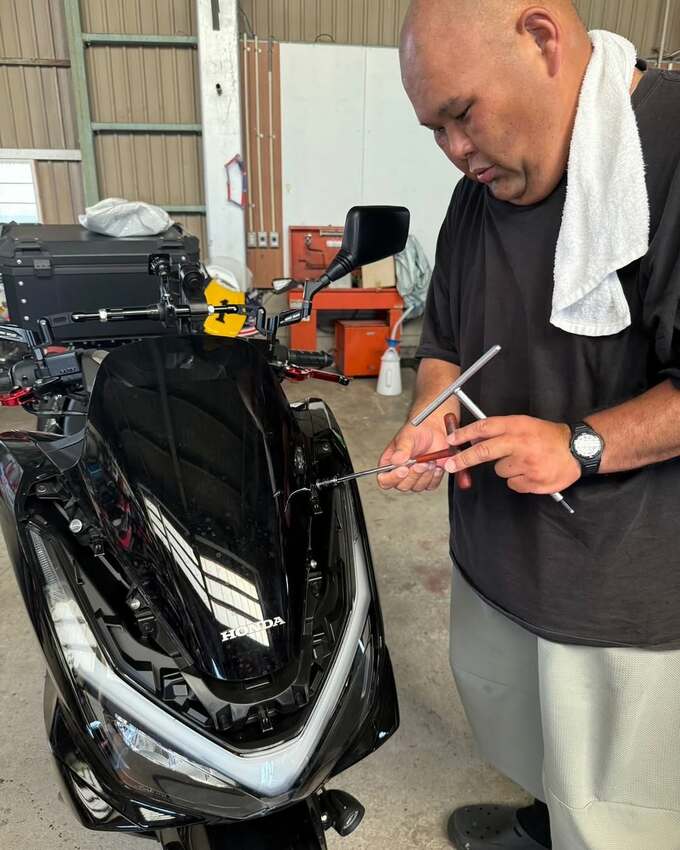 最新の投稿では、「PCX160をプチカスタム スクリーンをミドルロング(61㌢)に 安い思ったら中華製 今回はスムーズに取り付け完了」と投稿しています。
