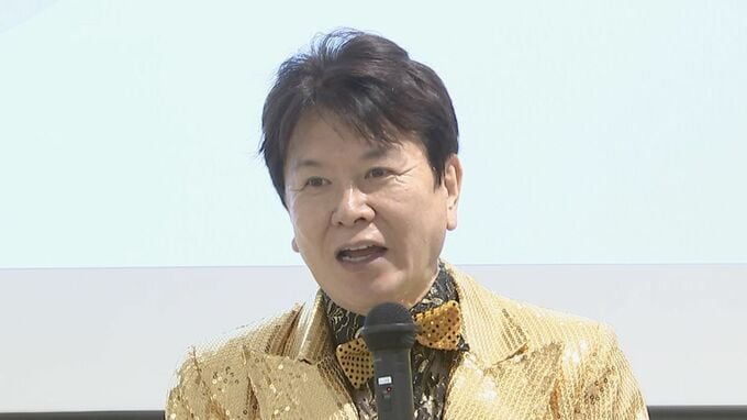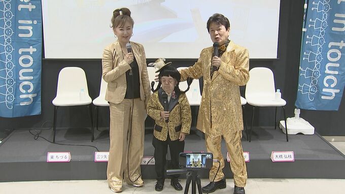 登壇したのは、東さんのほか、エスムラルダさん、大橋弘枝さん、大前光市さん、三ツ矢雄二さん、マメ山田さん。金色の衣装で登場した東さんは“私たち「Get in touch」は、「誰も排除しない、まぜこぜの社会」を目指して、エンターテインメントを通じて「すでに私たちは生きているんですよ」と、可視化する活動をしています。その活動の一環が「まぜこぜ一座」”と、あらためて活動理念を説明。